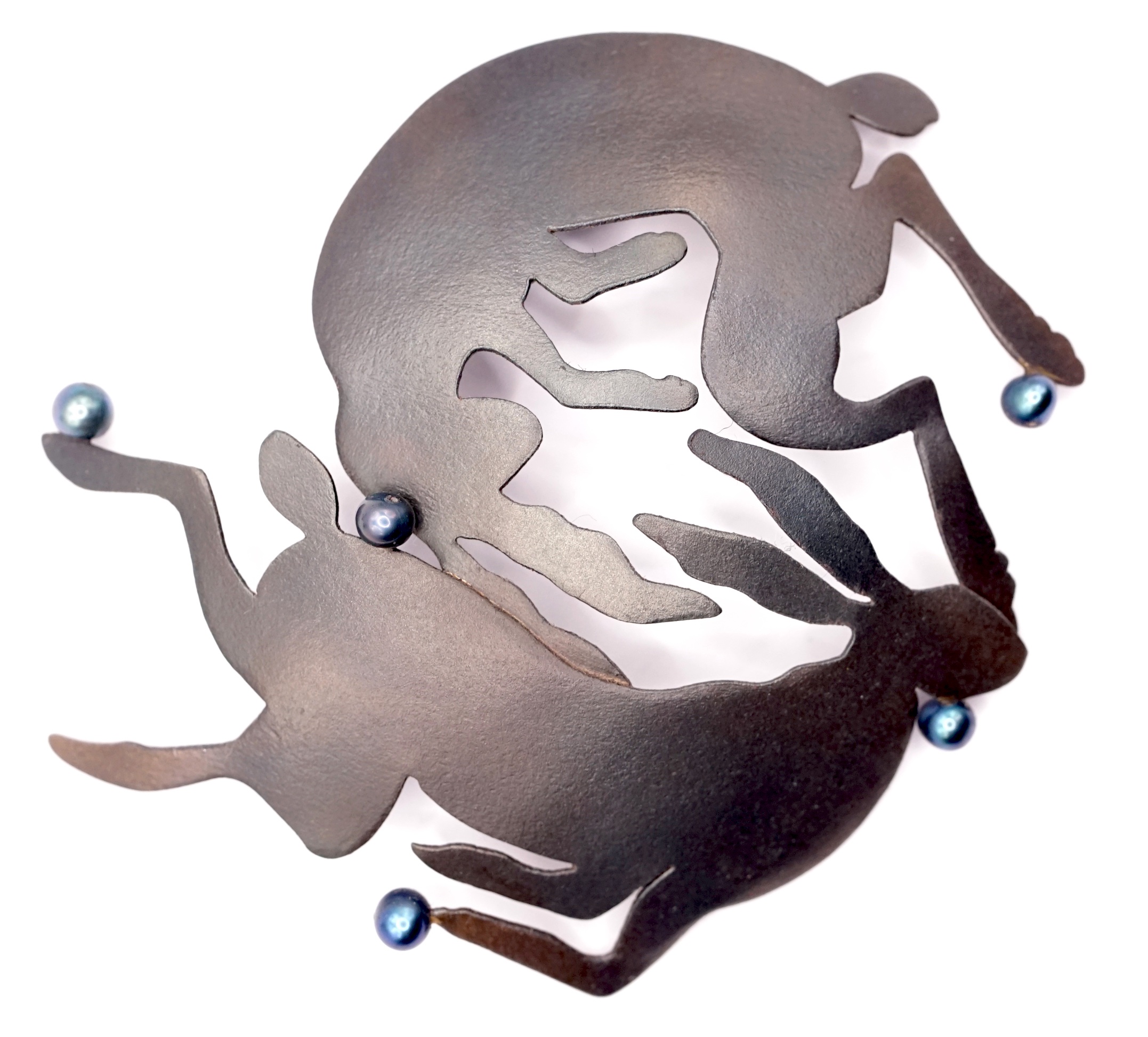 Iron sheet and blue cultured pearls